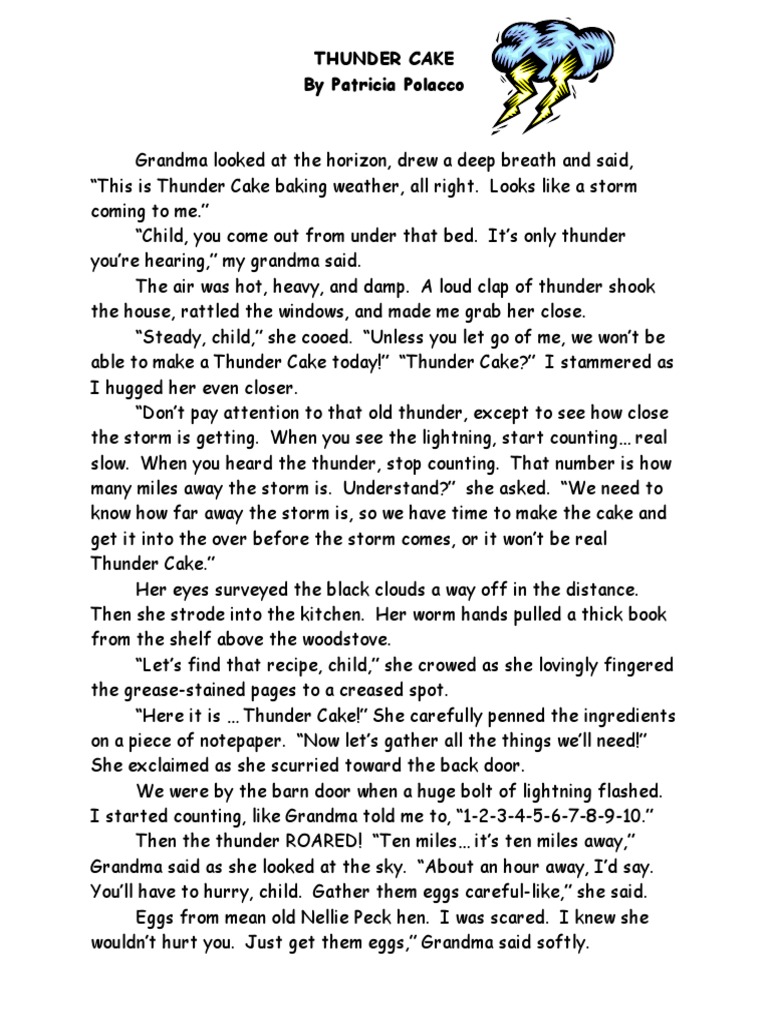 Thunder Cake Story Pdf Thunder Cakes